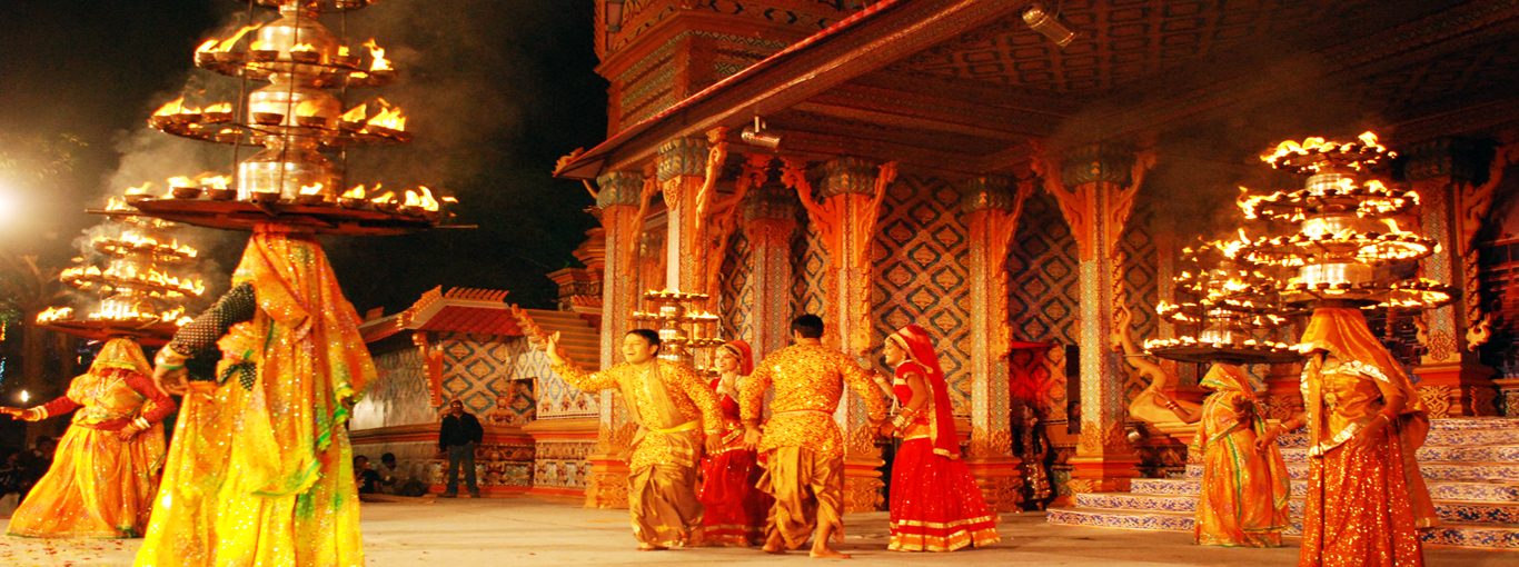 The land of lord Krishna and hid his consort –Radha Veiled women balancing large multi-tiered circular wooden pyramids on their heads , alight with 108 oil lamps , dance to strains of rasiya
